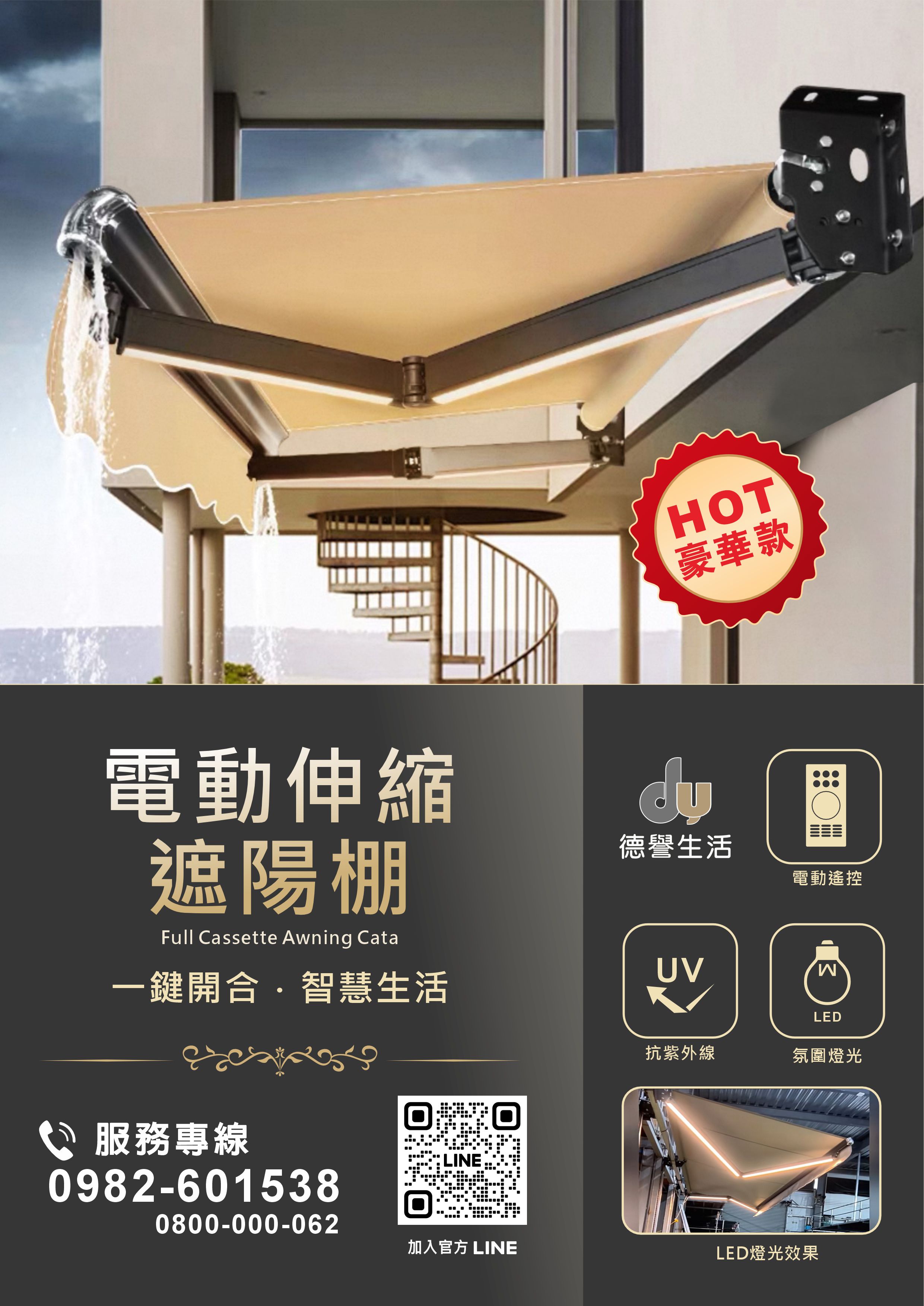 【電動伸縮遮陽棚-豪華款】